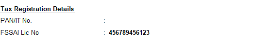 We have developed a TDL to record the FSSAI License of Supplier / Buyer (Trading Partner) as well.