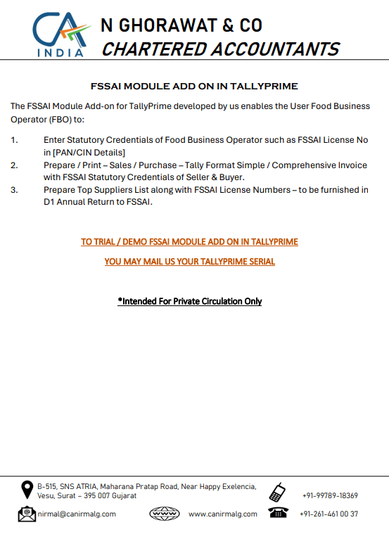 Contact us at innovation@canirmalg.com com with TallyPrime Serial No for Trial tcp (TDL) File and Pricing for License tcp File.
