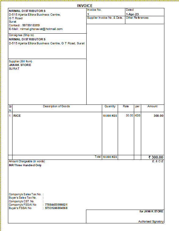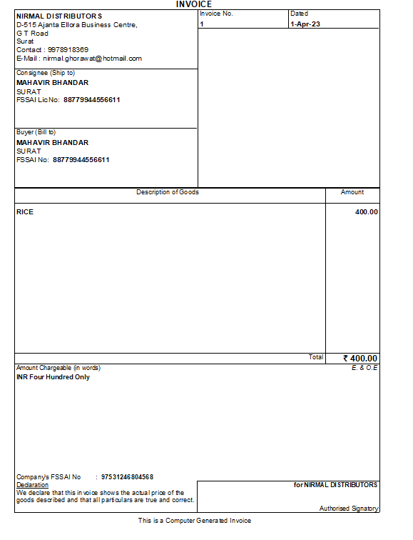 4. This TDL will Print Buyer & Seller and Our FSSAI Lic No on both Simple & Comprehensive Invoices in TallyPrime. Samples below:-